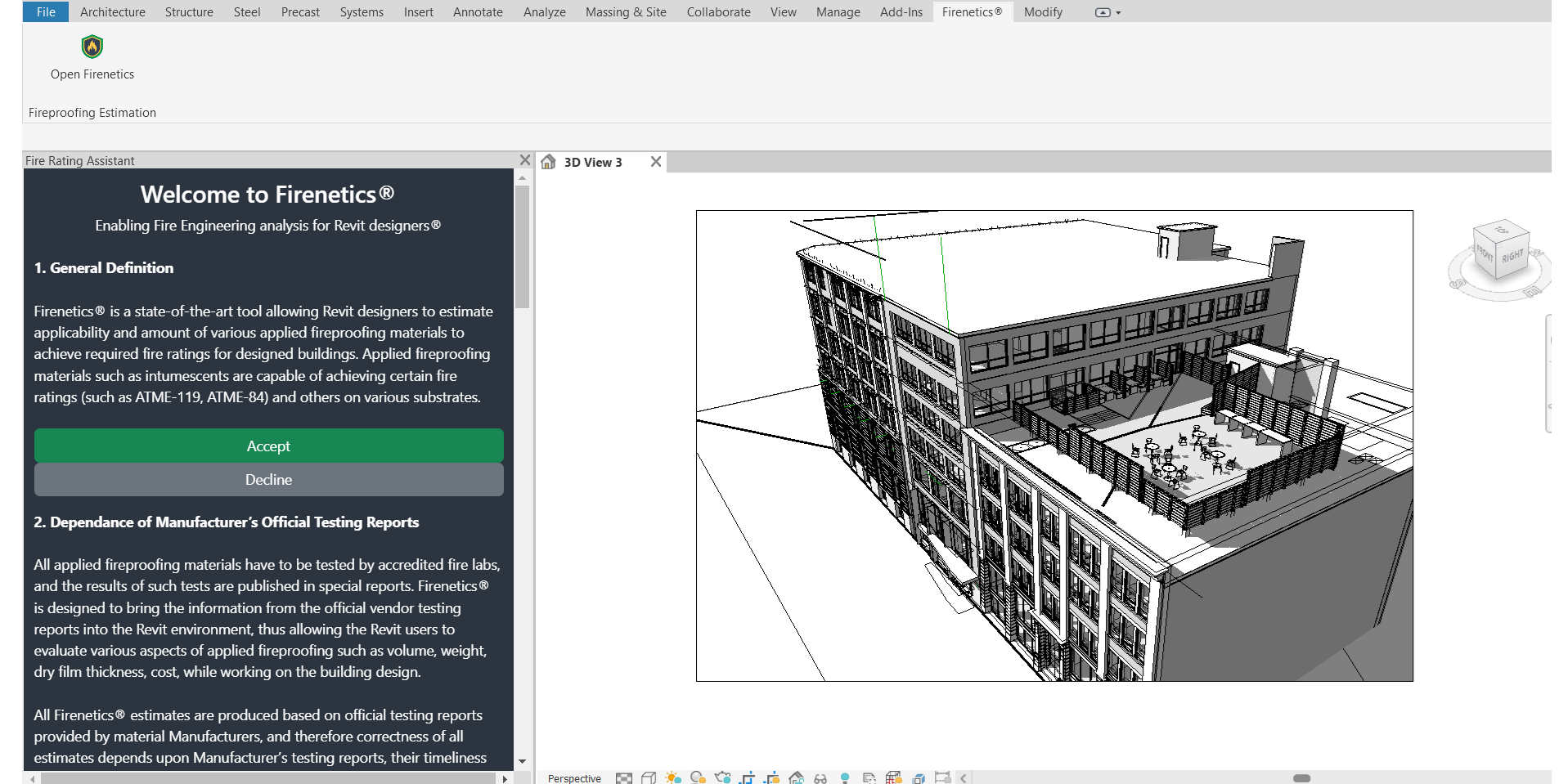 This workflow underscores the Firenetics’ ability to assist Revit engineers to enhance early-stage fire safety compliance while optimizing material usage and design efficiency.